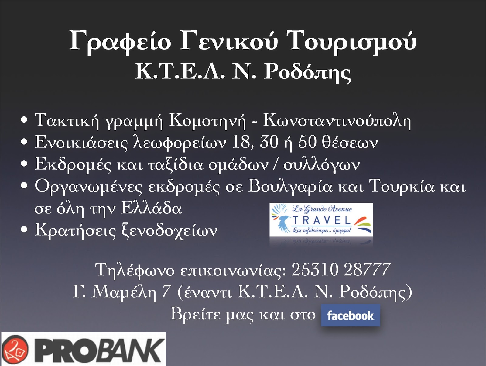 Ενημερωθείτε για όλα τα δρομολόγια, τα εκδοτήρια και τις αποθήκες του ΚΤΕΛ Ροδόπης σε Κομοτηνή, Θεσσαλονίκη και Αθήνα, για την τακτική γραμμή Κομοτηνή - Κωνσταντινούπολη, για ενοικιάσεις λεωφορείων και εκδρομές συλλόγων, καθώς και για οργανωμένα ταξίδια σε...